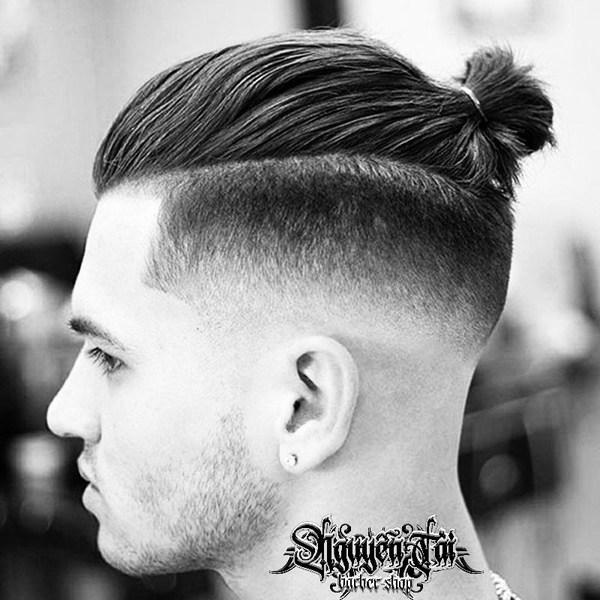 Một kiểu tóc khá đơn giản, những việc bạn cần làm chính là nuôi phần tóc mái và đỉnh đầu dài sau đó búi lên ở vị trí trung tâm. Lúc này bạn chỉ cần dồn tất cả tóc về vị trí này để tạo một búi tóc Top knot. Vấn đề thường gặp ở đây chính là các sợi tóc nhỏ và ngắn sẽ không vào nếp, vậy thì giải pháp duy nhất chính là sử dụng sáp để vuốt và đưa những sợi tóc này vào đúng vị trí.